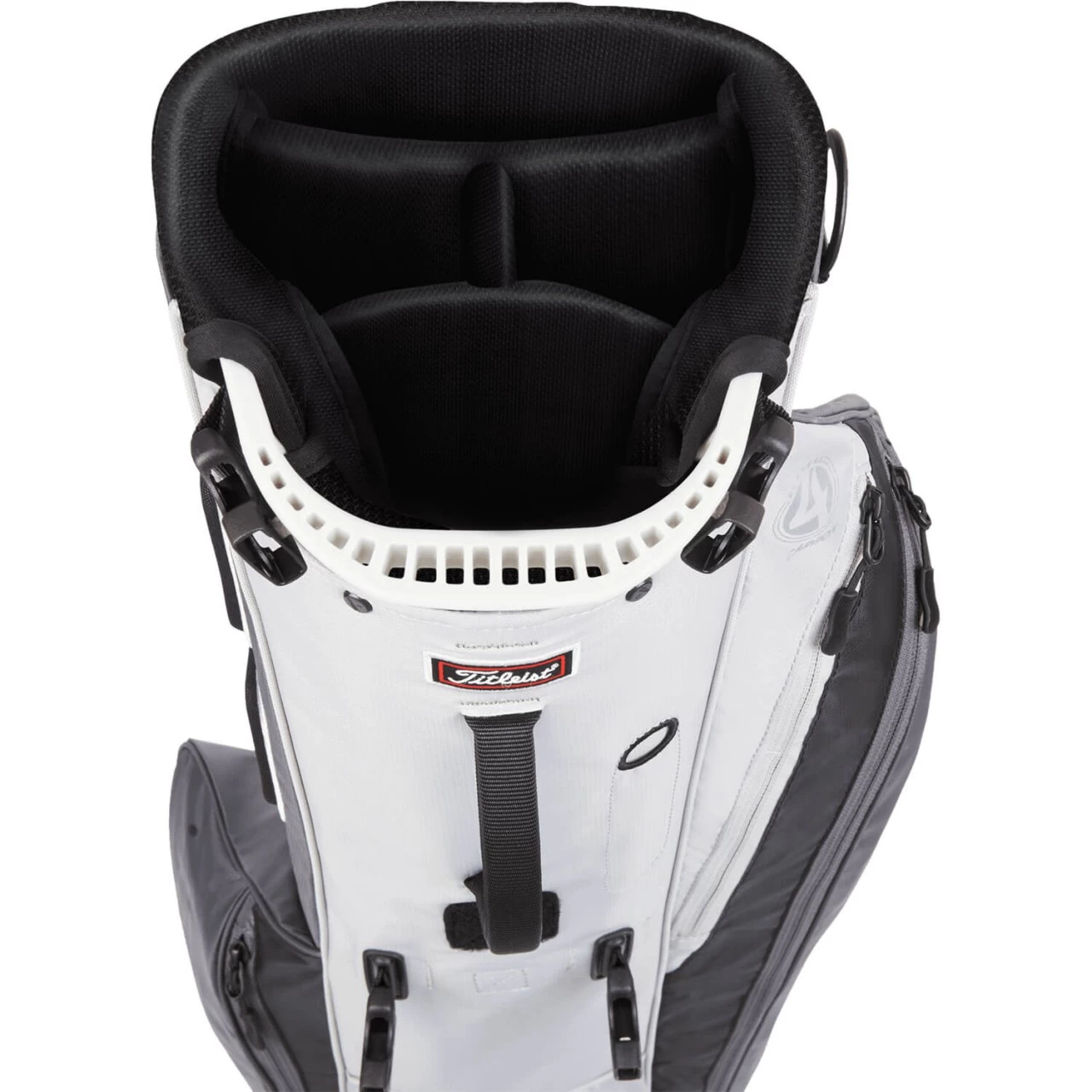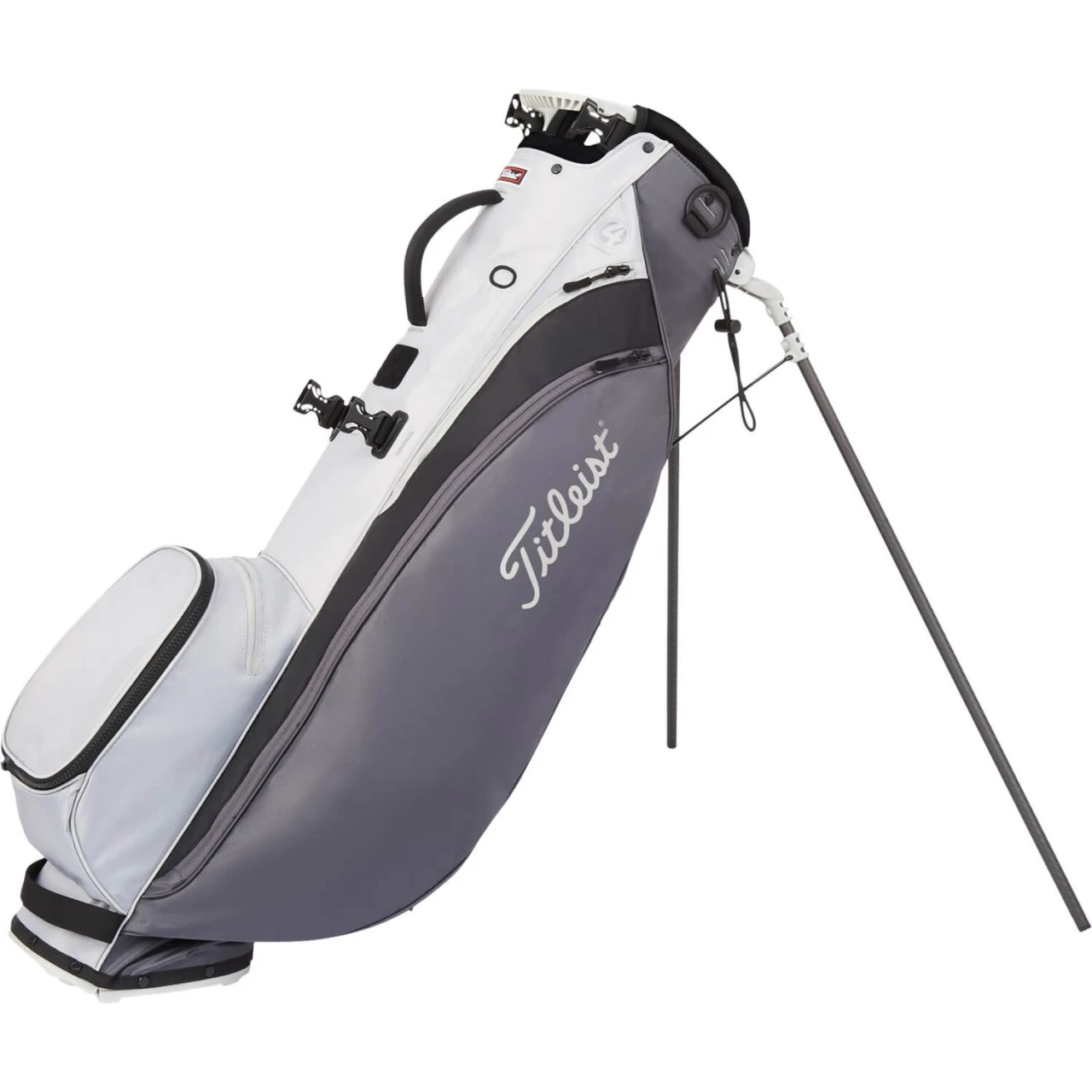 Das Players 4 Carbon Standbag von Titleist überzeugt mit seinem geringen Gerwicht von nur 1,3 kg und dem schmalen Design. Im vierfach unterteilten Top finden alle Schläger Platz, in den sechs Reißverschlussfächern das restliche Zubehör. Abgerundet wird die Ausstattung durch einen Stifthalter, einen Regenschirmhalter, ein Klettpatch für Handschuhe und eine Öse für Handtücher.